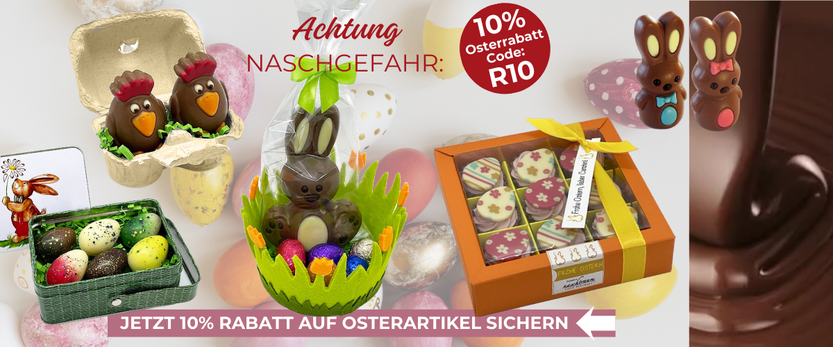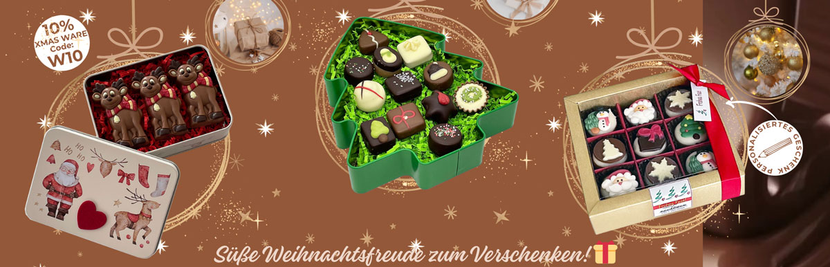 mit besten Zutaten in Premiumqualität von namhaften Chocolatiers aus Deutschland und Belgien in Handarbeit hergestellt.