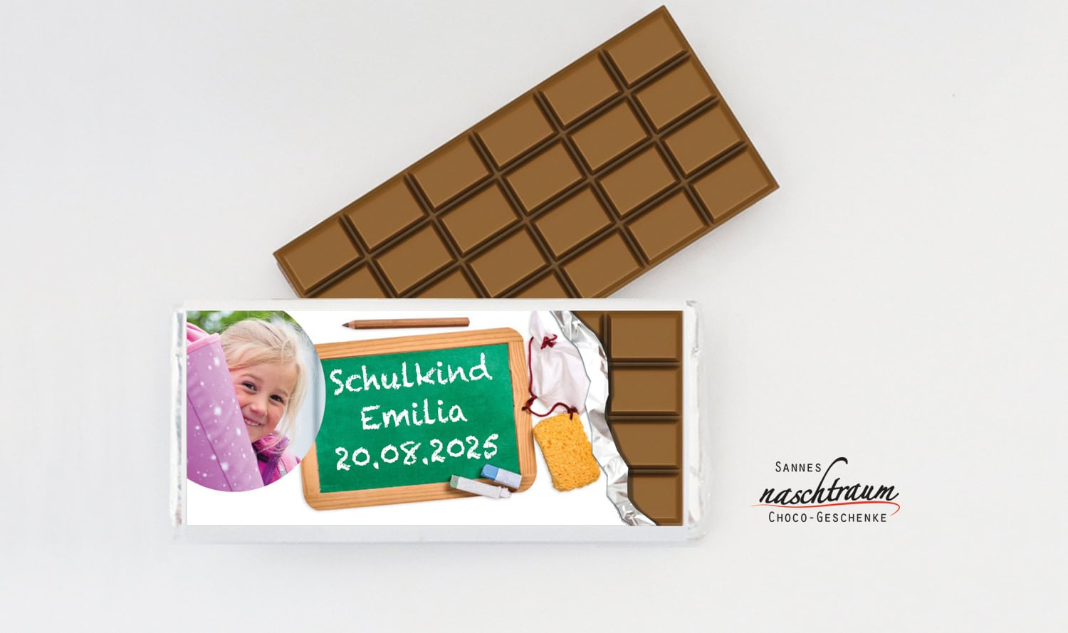“Süße” Täfelchen zum Schulstart mit individuellem Foto, Namen und Datum.