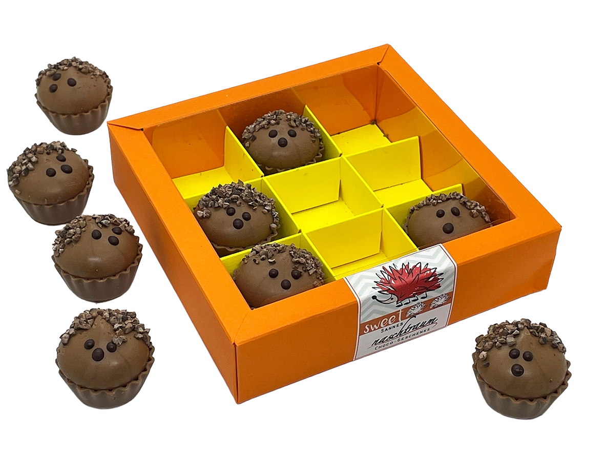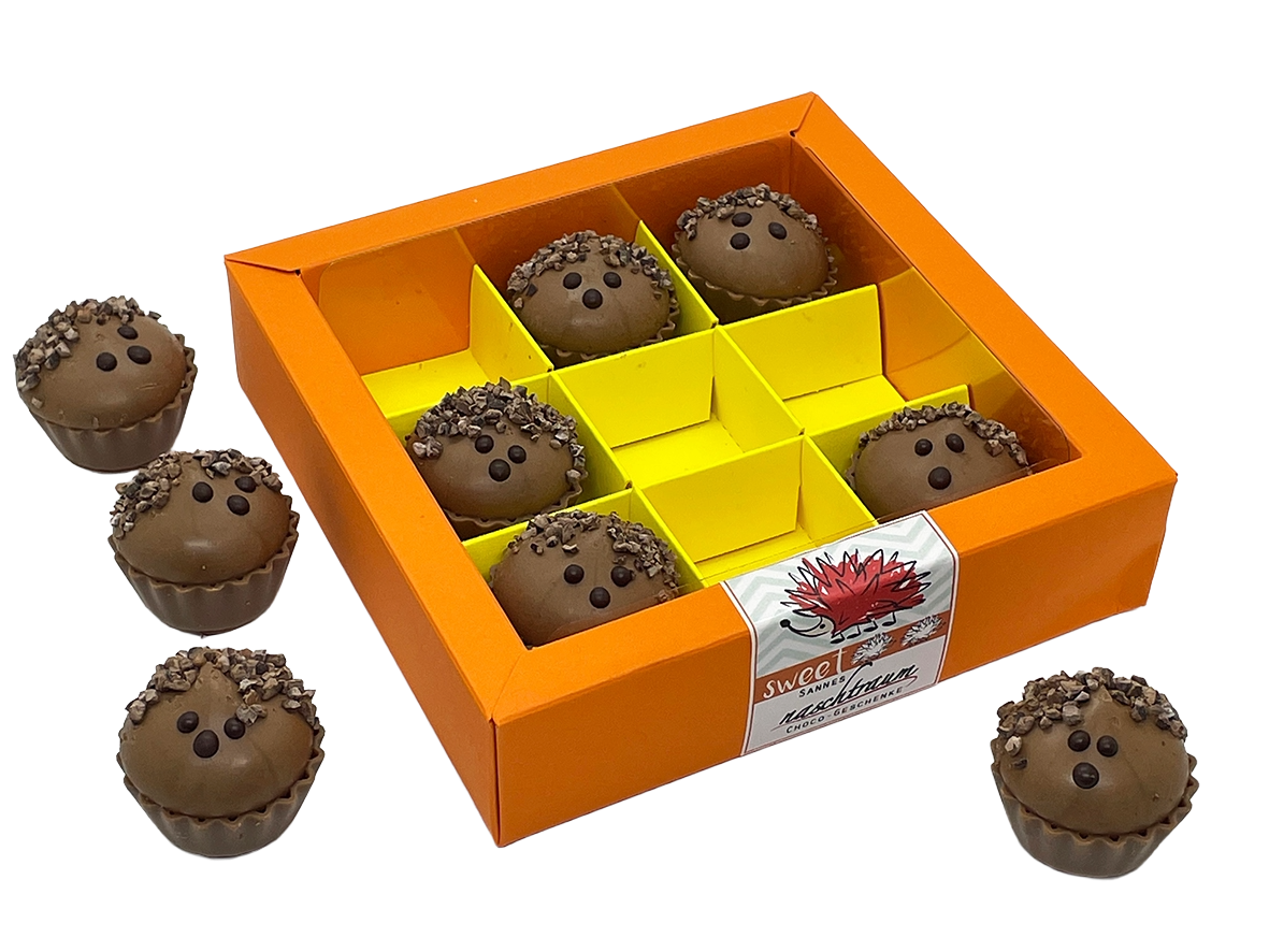 | Zutaten | 9 Igel Cupcakes aus gefüllter Schokolade, dekororiert, mit Haselnussnougatfüllung |