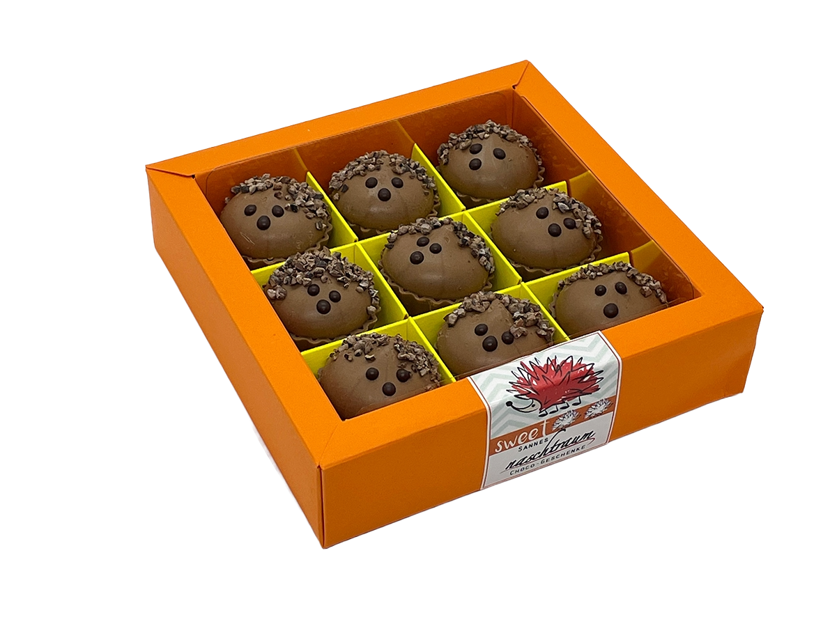 Unsere liebevoll gestalteten Igel Cupcakes sind das süßeste Highlight der Herbstsaison! Außen eine dekorative Schokoladenhülle, veredelt mit knusprigen Schokostreuseln – innen eine zartschmelzende Schokoladencreme mit feinem Crisp, die Genießerherzen höherschlagen lässt.