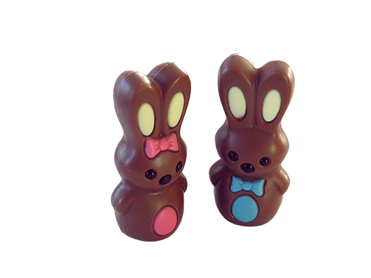 Süßes Hasenpaar aus zartschmelzender Edelvollmilch Schokolade in Premiumqualität.